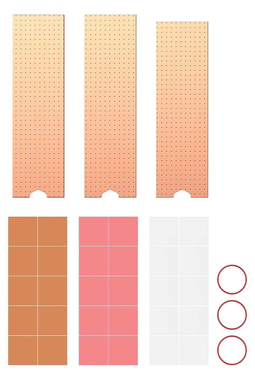 - Три пластины разной толщины и длины позволяют подобрать оптимальную конфигурацию под конкретный SSD и корпус: можно использовать один радиатор или комбинировать/складывать их для усиленного охлаждения.