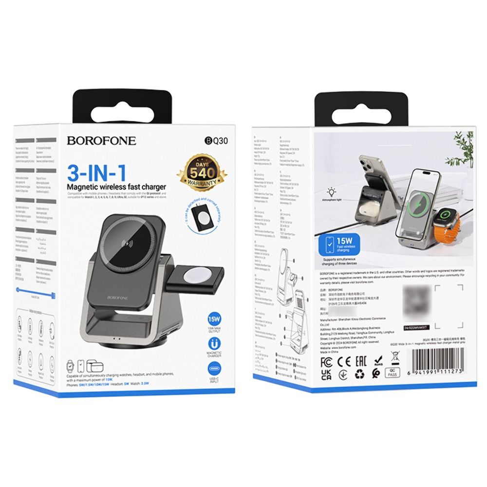 Беспроводное зарядное устройство Borofone BQ30 3 в 1