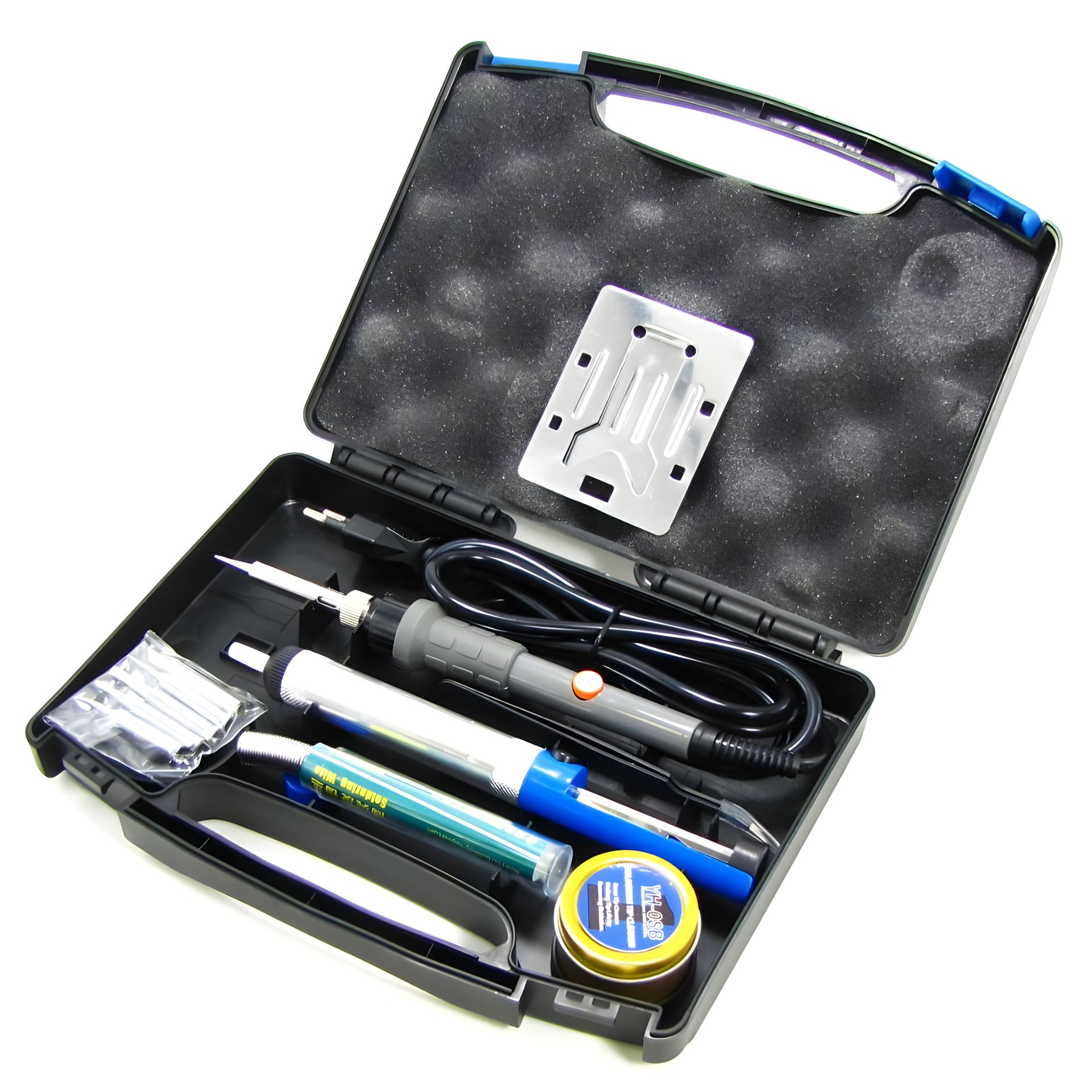 Паяльный набор WEP 947-II — это универсальный комплект для пайки, который идеально подойдет как для домашних мастеров, так и для профессионалов. Набор поставляется в удобном пластиковом кейсе, что обеспечивает комфортное хранение, защиту инструментов и лёгкую транспортировку. В комплекте есть всё необходимое для качественной пайки — от самого паяльника с регулировкой температуры до сменных жал, припоя, подставки и дополнительных инструментов.