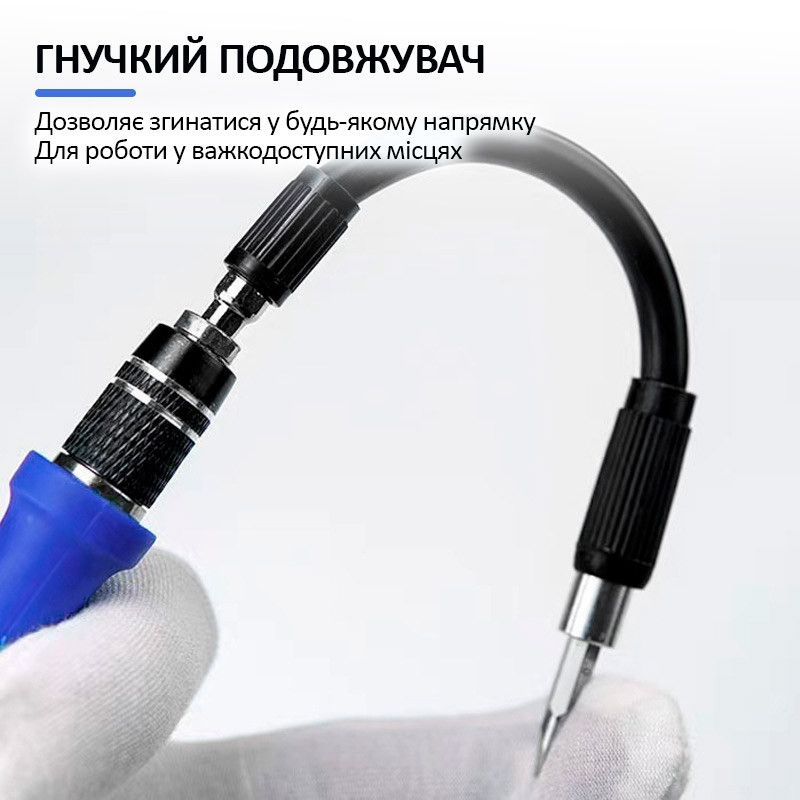 Гибкий удлинитель: изгибается в любом направлении для работы в труднодоступных местах