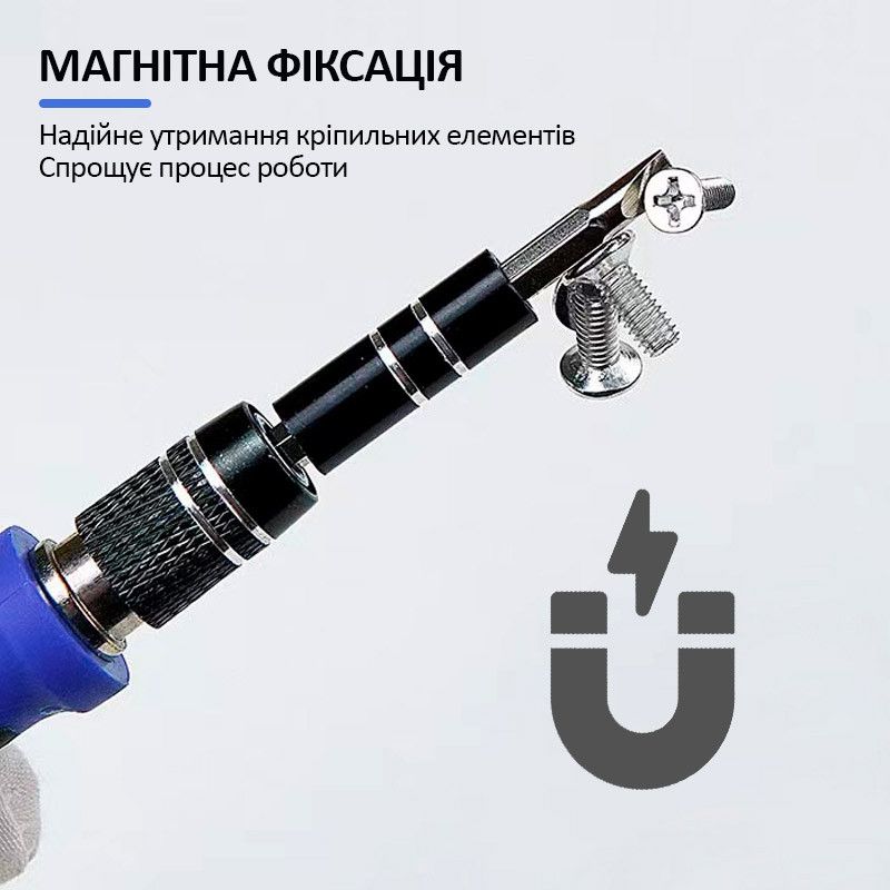 - Надежно удерживает биты и винты, упрощая процесс сборки и разборки.