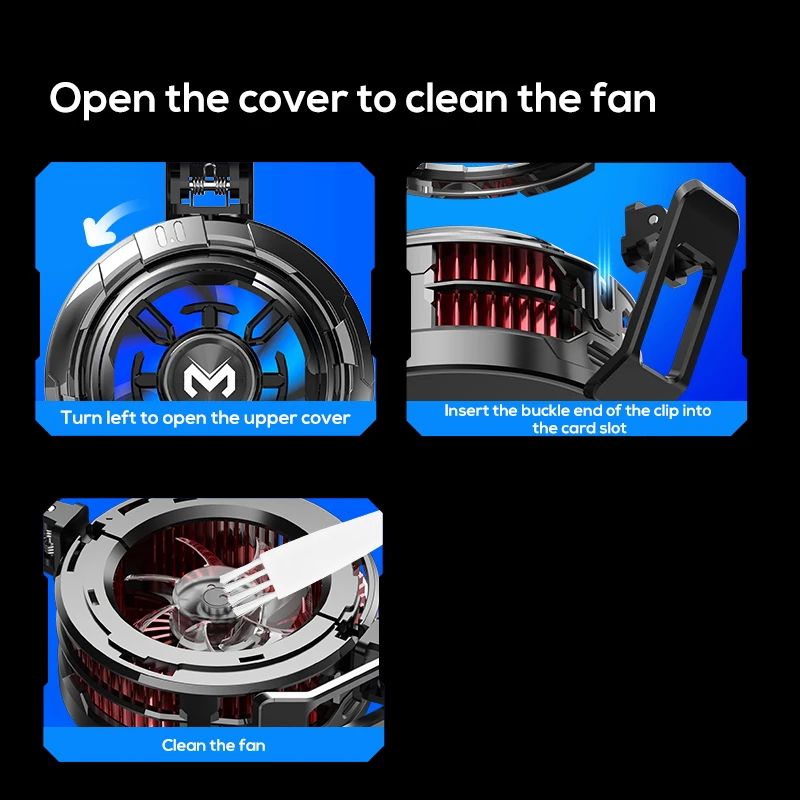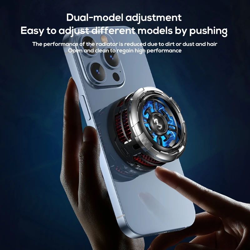 - Встроенные магниты и пружинный зажим позволяют надежно закрепить кулер как на iPhone, так и на Android-устройствах.