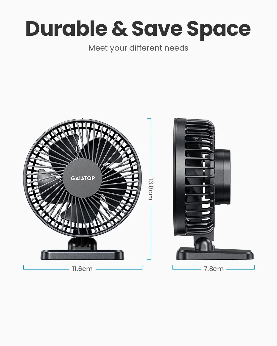Gaiatop TF30 – это компактный и стильный настольный вентилятор, работающий от USB. Он идеально подойдет для использования дома, в офисе, автомобиле или в путешествиях. Благодаря классическому дизайну и небольшим габаритам этот вентилятор легко помещается на столе, не занимая много места, а три режима скорости позволяют подобрать оптимальный уровень охлаждения.