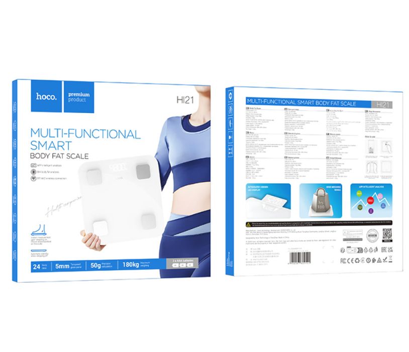 Hoco HI21 — это современные умные весы, которые позволяют не только измерять вес, но и получать подробный анализ состояния организма. Благодаря высокоточным сенсорам и синхронизации по Bluetooth 4.2 с мобильным приложением Unique Health, вы сможете отслеживать до 24 параметров тела, включая массу жировой и мышечной ткани, уровень воды, плотность костей и даже частоту сердечных сокращений.