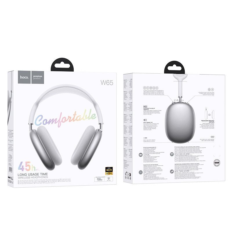 Беспроводные наушники Hoco W65 — это удачное сочетание изысканного дизайна, качественного звучания и продуманной эргономики. Благодаря лёгкой конструкции и высокой автономности, эти наушники идеально подойдут как для активного образа жизни, так и для работы, поездок и повседневного использования.