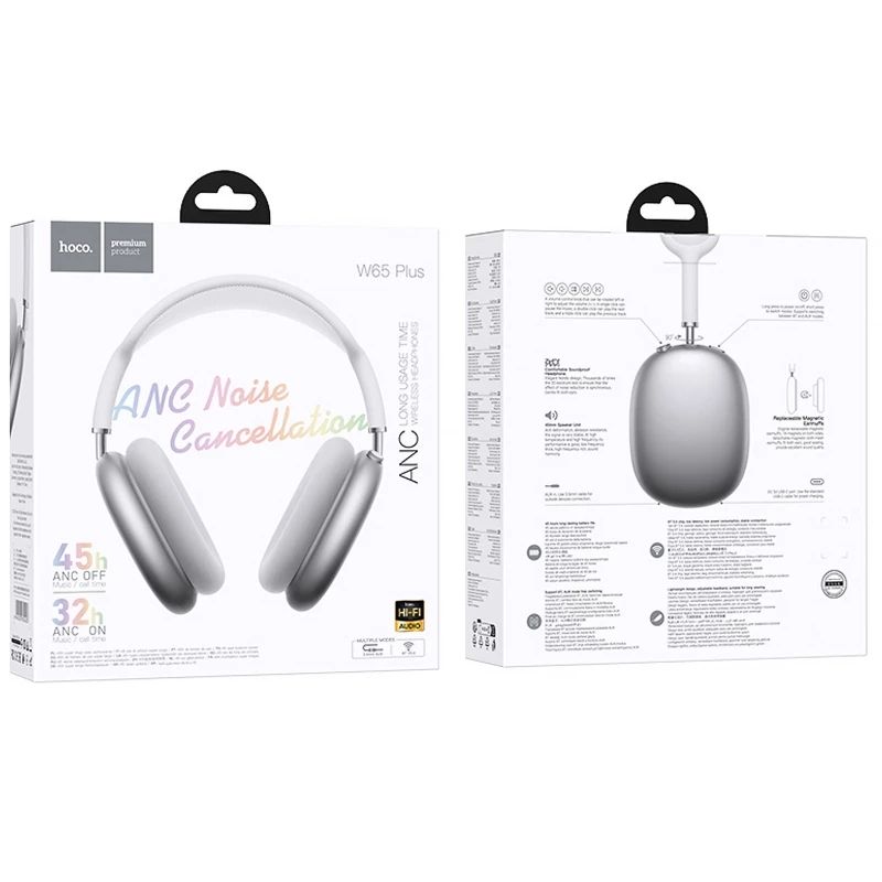Hoco W65 Plus – это стильные накладные наушники, созданные для тех, кто ценит чистый звук, комфорт и современный дизайн. Они сочетают в себе беспроводное и проводное подключение, технологию активного шумоподавления и долгую автономность, обеспечивая удовольствие от музыки в любых условиях – дома, на работе, в дороге или во время прогулок.