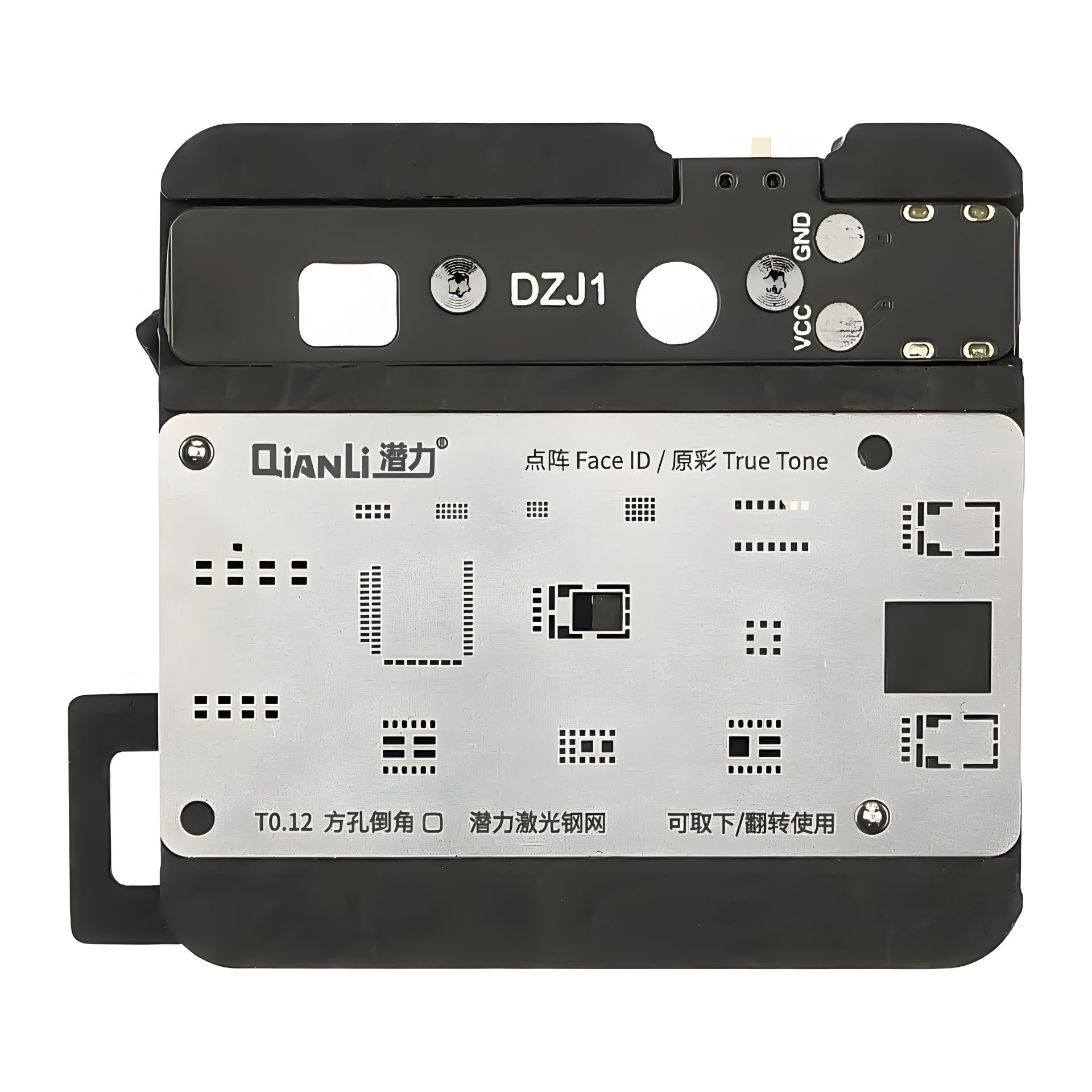 Держатель QianLi DZJ1 предназначен для точного и безопасного ремонта Face ID и DOT сенсора на iPhone моделей от X до 13 Pro Max. Этот инструмент обеспечивает надежную фиксацию устройства, предотвращает смещение модулей во время пайки или разборки и позволяет мастеру работать с максимальной точностью.