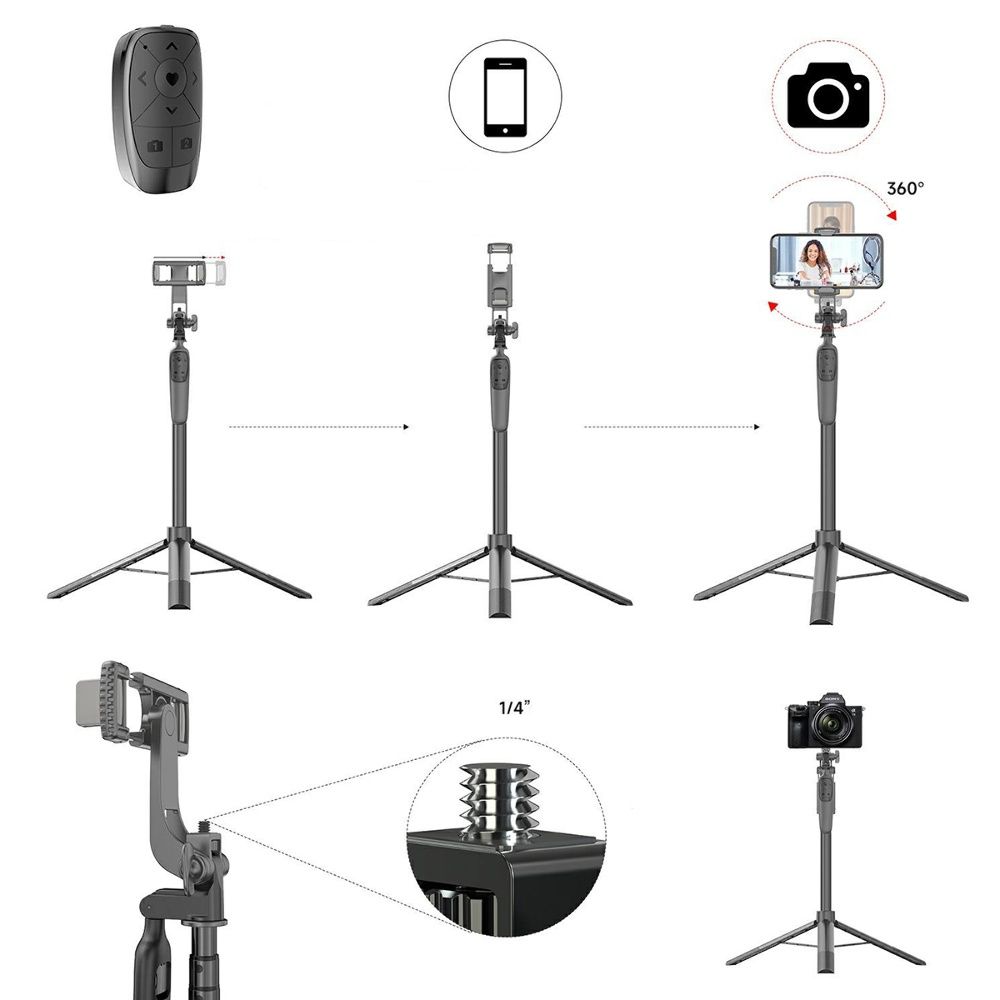 Штатив-триподAdyss A65 — этомногофункциональныйинструментдлясъемкифото и видео, совмещающийфункцииустойчивогоштатива и выдвижнойселфи-палки. Благодаряпродуманнойконструкции, Bluetooth-пульту и панорамному вращению на 360°, устройство идеально подходит для блогеров, путешественников и любителей качественного контента. Он обеспечивает удобство работы одной рукой, стабильность при съемке и возможность крепления различных гаджетов, включая камеры и фотоаппараты.