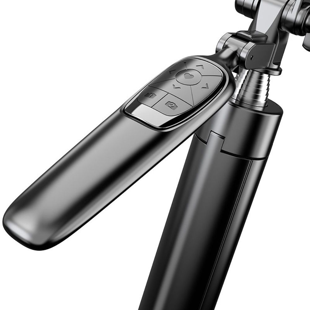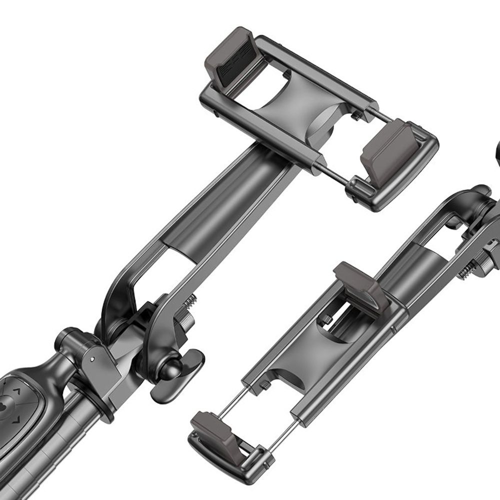 Устройство оснащено поворотным механизмом на 360°, поддержкой Bluetooth-пульта и креплением для различных гаджетов, включая смартфоны, камеры и фотоаппараты. Продуманная конструкция и эргономичная ручка обеспечивают удобство в использовании и стабильность при съемке.