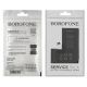 Borofone - бренд является одним из популярных производителей аксессуаров, мелких гаджетов и других некрупных товаров. Является ответвлением известного бренда Hoco в сторону демократизации цены. За счет большого ассортимента товаров и высоких продаж, обеспечивают хорошее соотношение цены и качества. Рекомендуем товары данного бренда среди аналогов. Аккумуляторы данного бренда - полноценная замена родной батарее. Поставляются в технической упаковке (пакет, пленка).