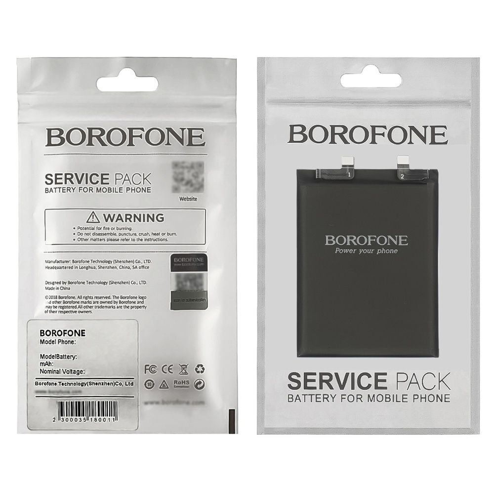Borofone - бренд является одним из популярных производителей аксессуаров, мелких гаджетов и других некрупных товаров. Является ответвлением известного бренда Hoco в сторону демократизации цены. За счет большого ассортимента товаров и высоких продаж, обеспечивают хорошее соотношение цены и качества. Рекомендуем товары данного бренда среди аналогов. Аккумуляторы данного бренда - полноценная замена родной батарее. Поставляются в технической упаковке (пакет, пленка).
