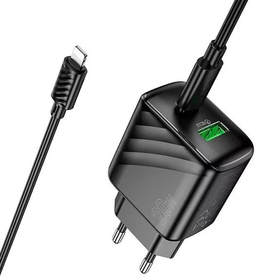 Устройство Зарядное Hoco CS25A Сетевое 1USB-C/1USB PD/QC 20W+Type-C на Lightning Черное
