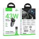 Автомобильное Устройство для Зарядки Hoco NZ16A USB/ Type-C 43W PD QC 25W метал серый + кабель Type-C to Lightning