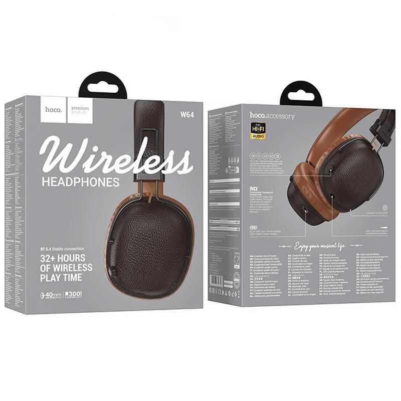 Накладные наушники Hoco W64 беспроводные, коричневые