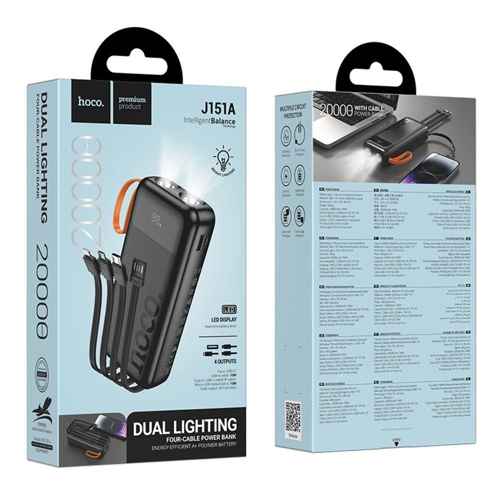 Повербанк Hoco J151A Spirit с двойной подсветкой и четырьмя кабелями 20000mAh Черный