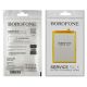 Borofone - бренд является одним из популярных производителей аксессуаров, мелких гаджетов и других некрупных товаров. Является ответвлением известного бренда Hoco в сторону демократизации цены. За счет большого ассортимента товаров и высоких продаж, обеспечивают хорошее соотношение цены и качества. Рекомендуем товары данного бренда среди аналогов. Аккумуляторы данного бренда - полноценная замена родной батарее. Поставляются в технической упаковке (пакет, пленка).