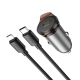 Серое металлическое зарядное устройство для автомобиля Hoco NZ16 Type-C PD 30W + кабель Type-C на Lightning