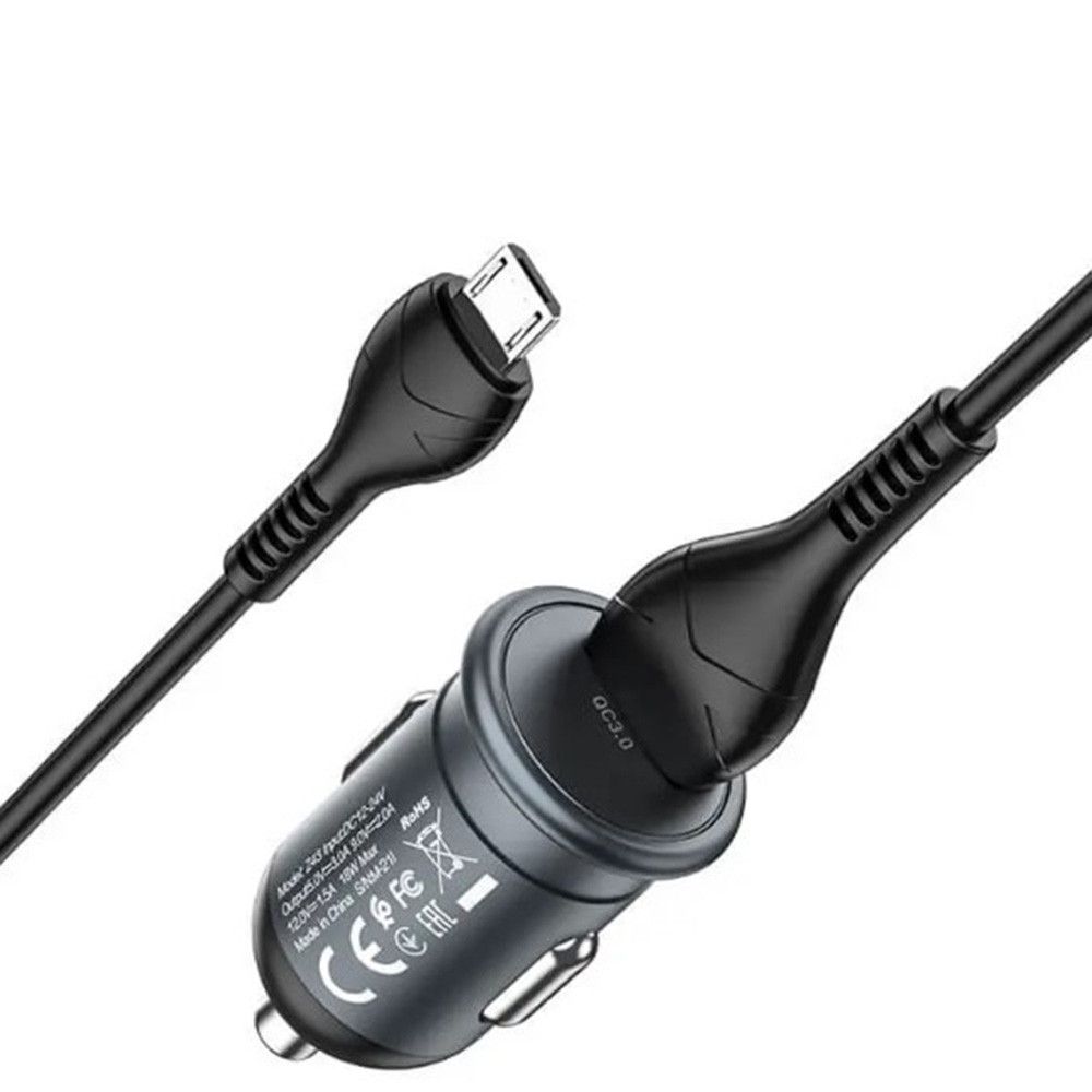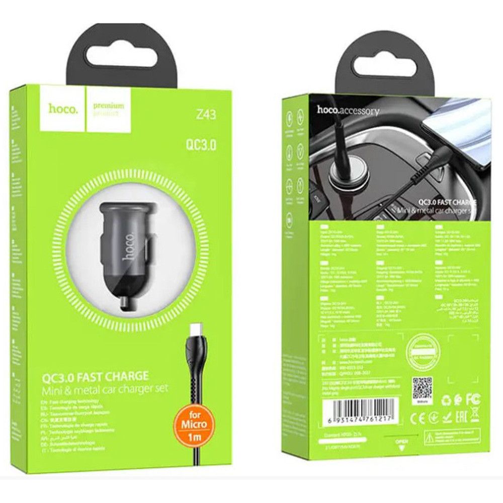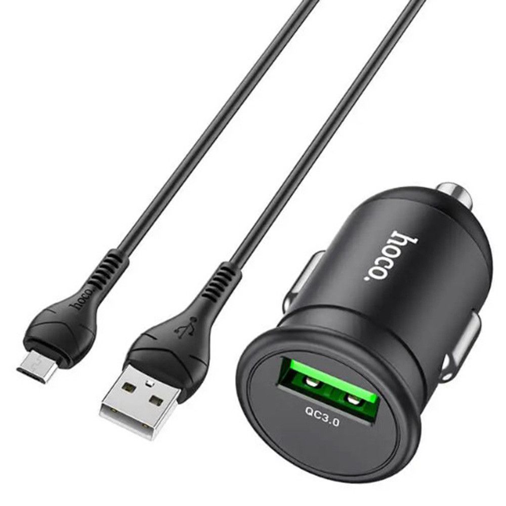 Зарядное устройство автомобильное Hoco Z43 USB QC черное с кабелем USB to MicroUSB