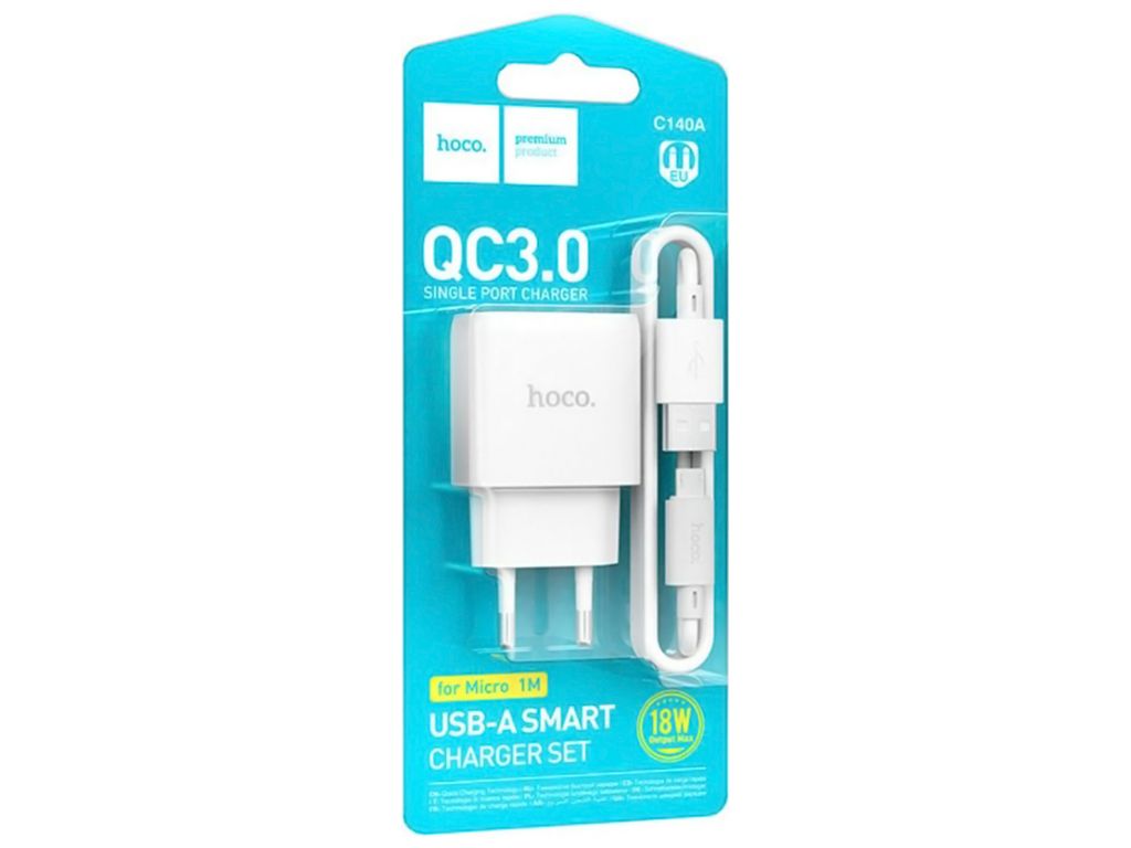 Зарядное устройство сетевое Hoco C140A 1USB QC 18W плюс кабель USB to Micro белое