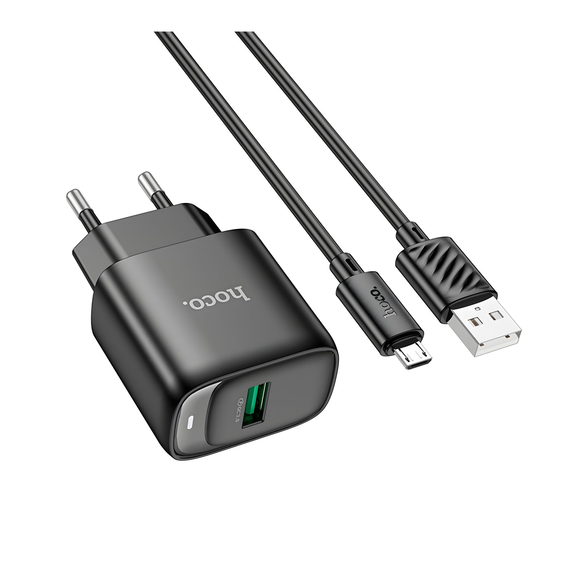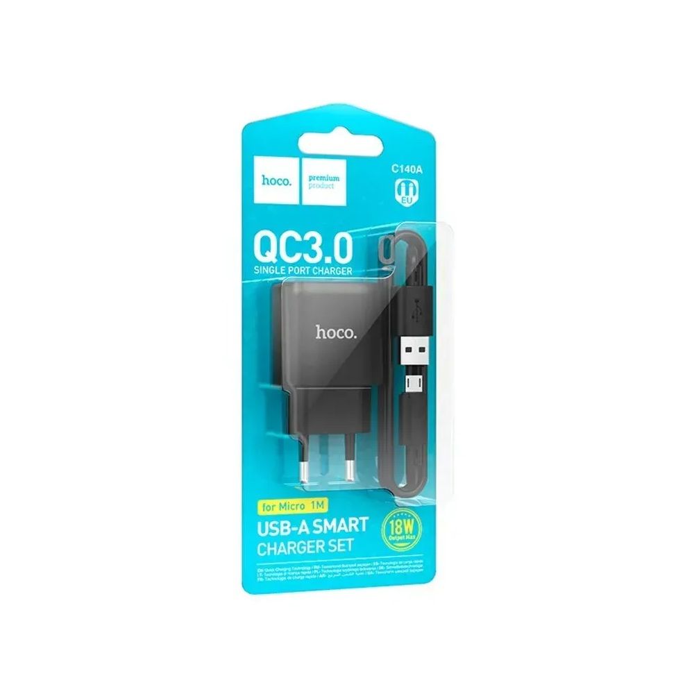 Зарядное устройство сетевое Hoco C140A 1USB QC 18W плюс кабель USB to Micro черное