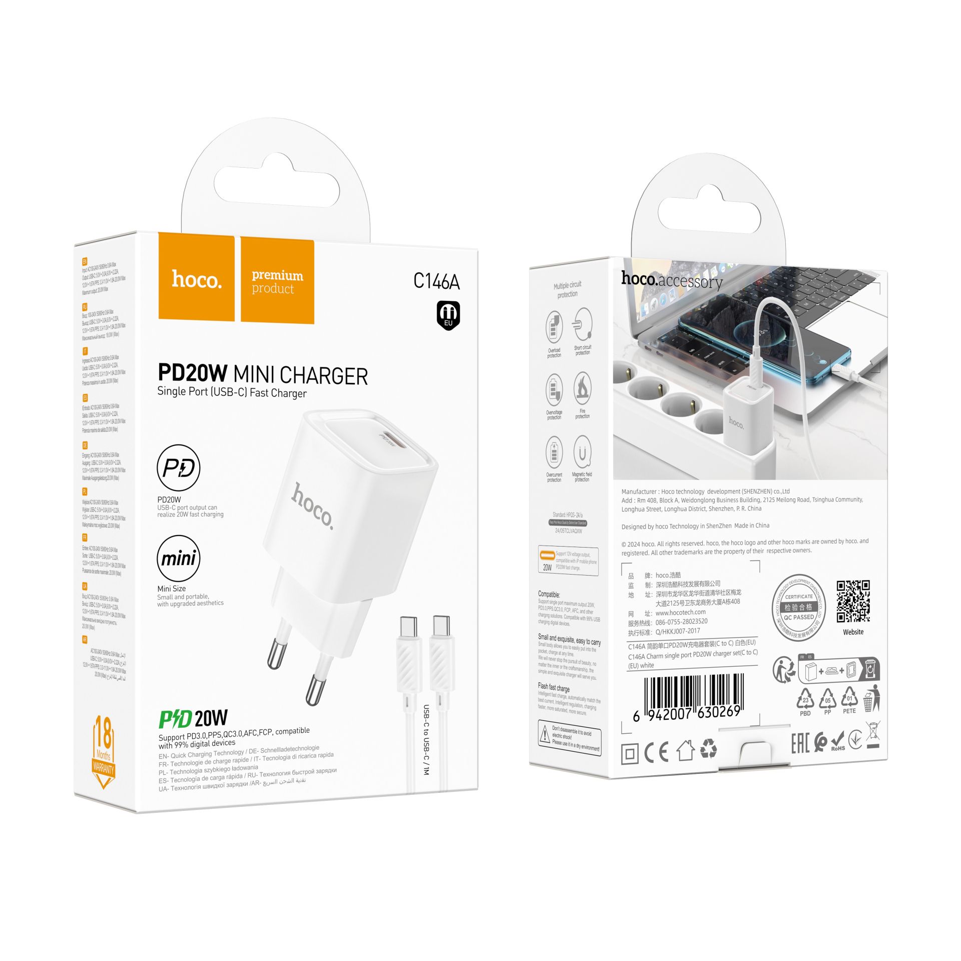 Сетевое Зарядное Устройство Hoco 1USB-C C146A PD/QC 20W+Type-C to Type-C Белый