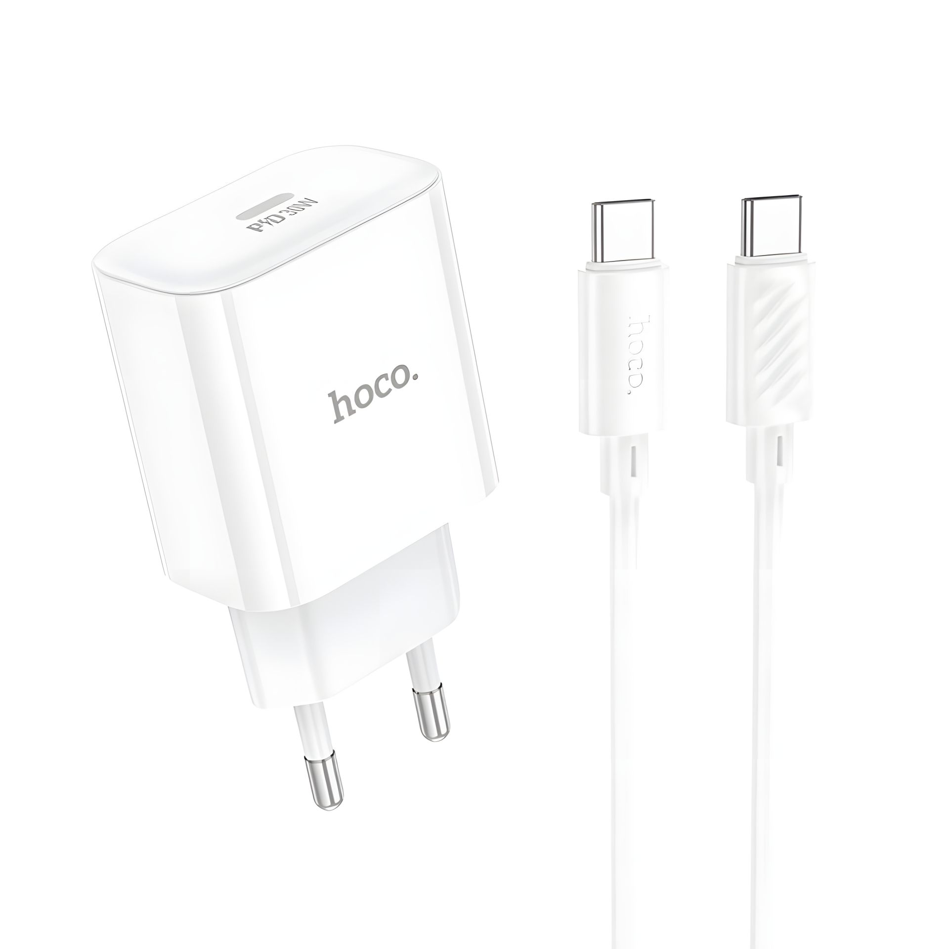 Hoco C76A Pro 1USB-C PD/QC 30W+Type-C to Type-C белое Сетевое Зарядное Устройство
