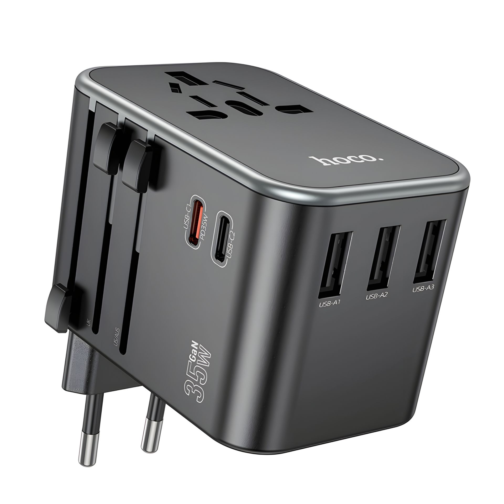 Hoco AC19: Сетевое зарядное устройство 3 USB и 2 Type-C в черном цвете, 35W