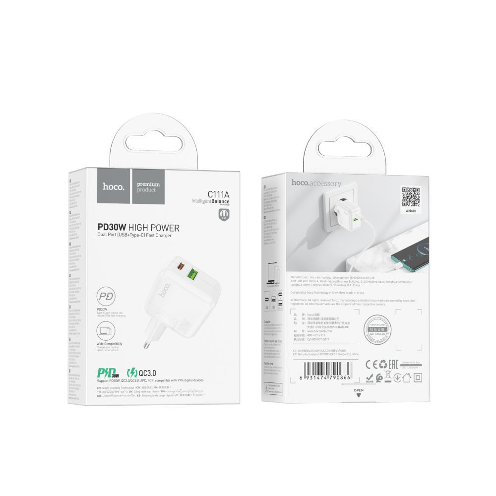 Белое сетевое зарядное устройство Hoco C111A Lucky PD30W+QC3.0