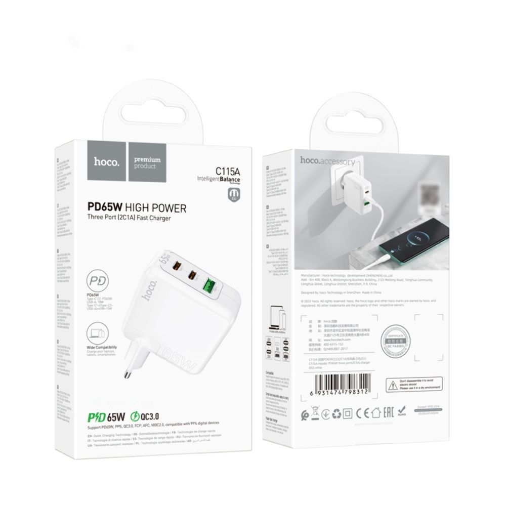 Сетевое зарядное устройство Hoco C115A 2 Type-C/ USB PD 65W белое