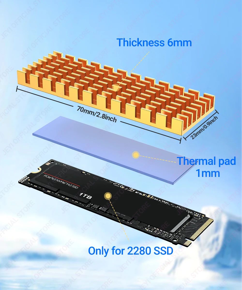 - Подходит для большинства современных SSD стандартного размера M.2 2280, включая устройства для PS5, ПК и ноутбуков.