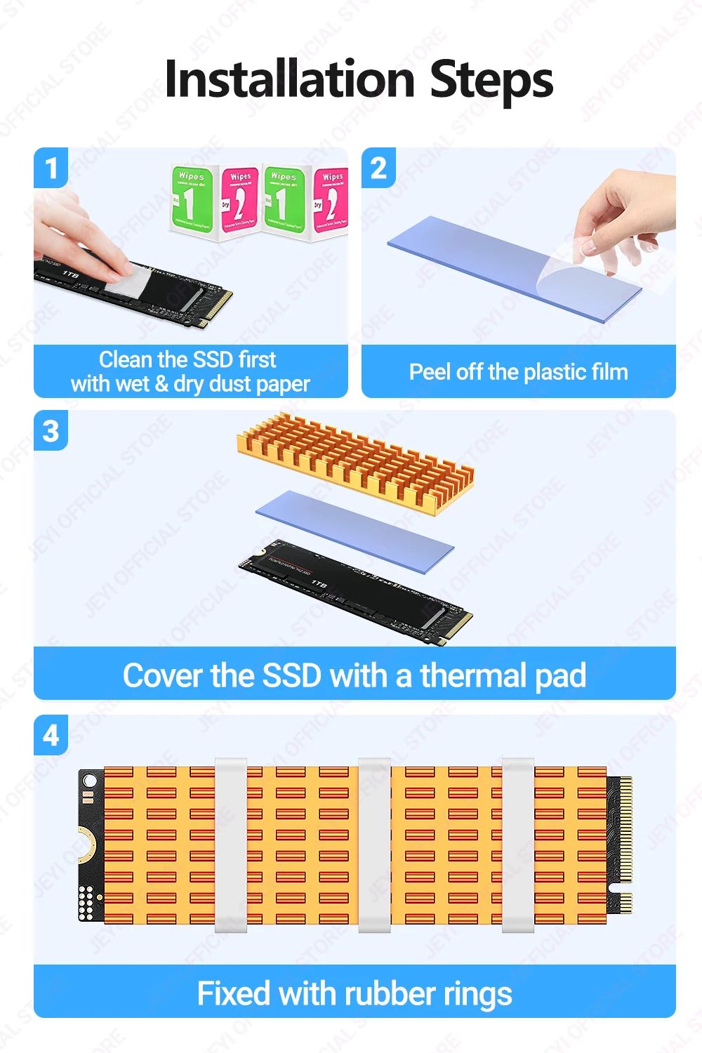 - Термопрокладка и салфетки позволяют подготовить поверхность SSD для максимальной эффективности теплоотвода.