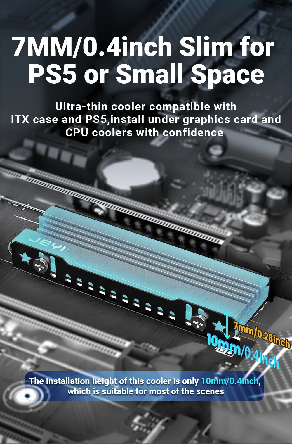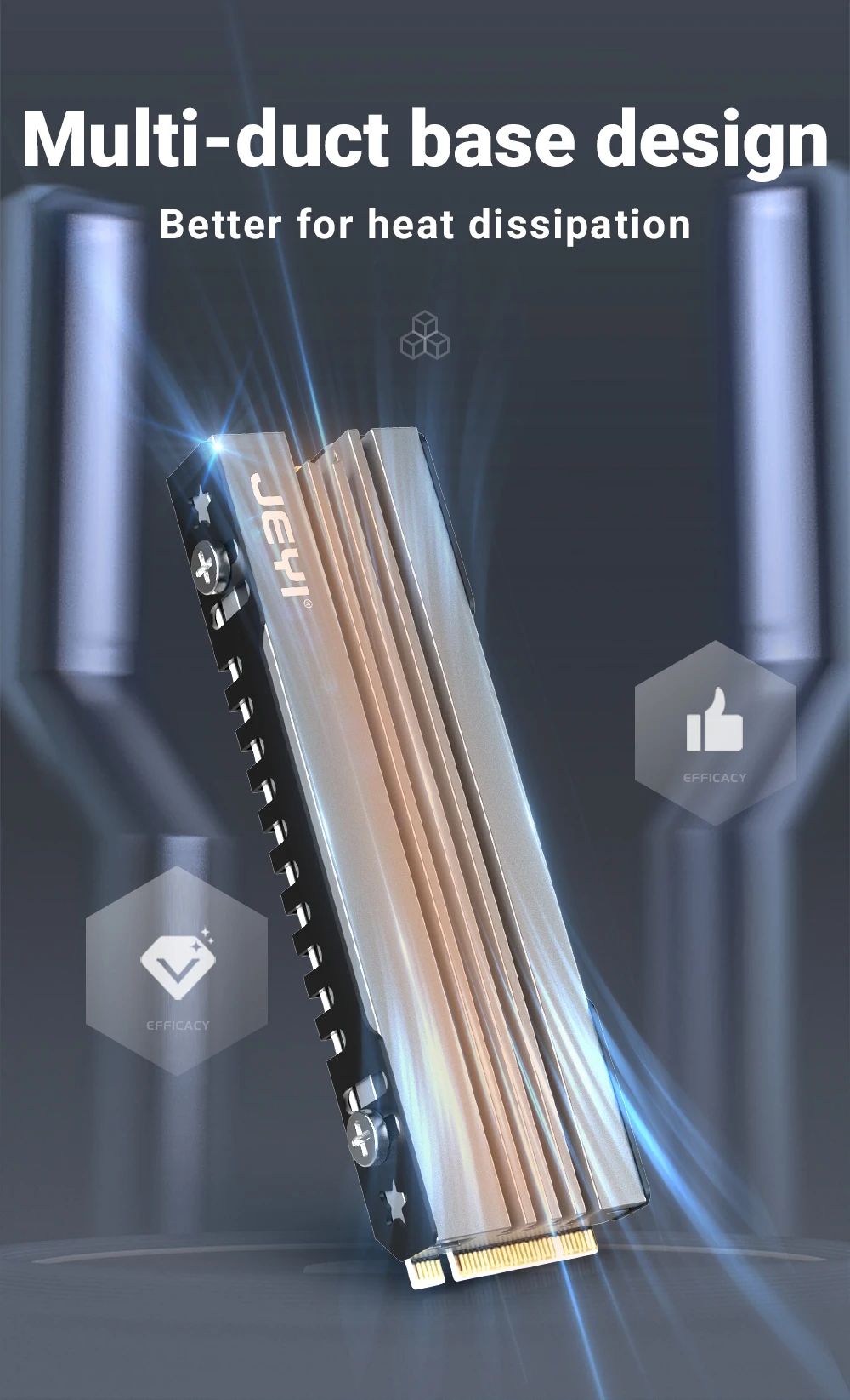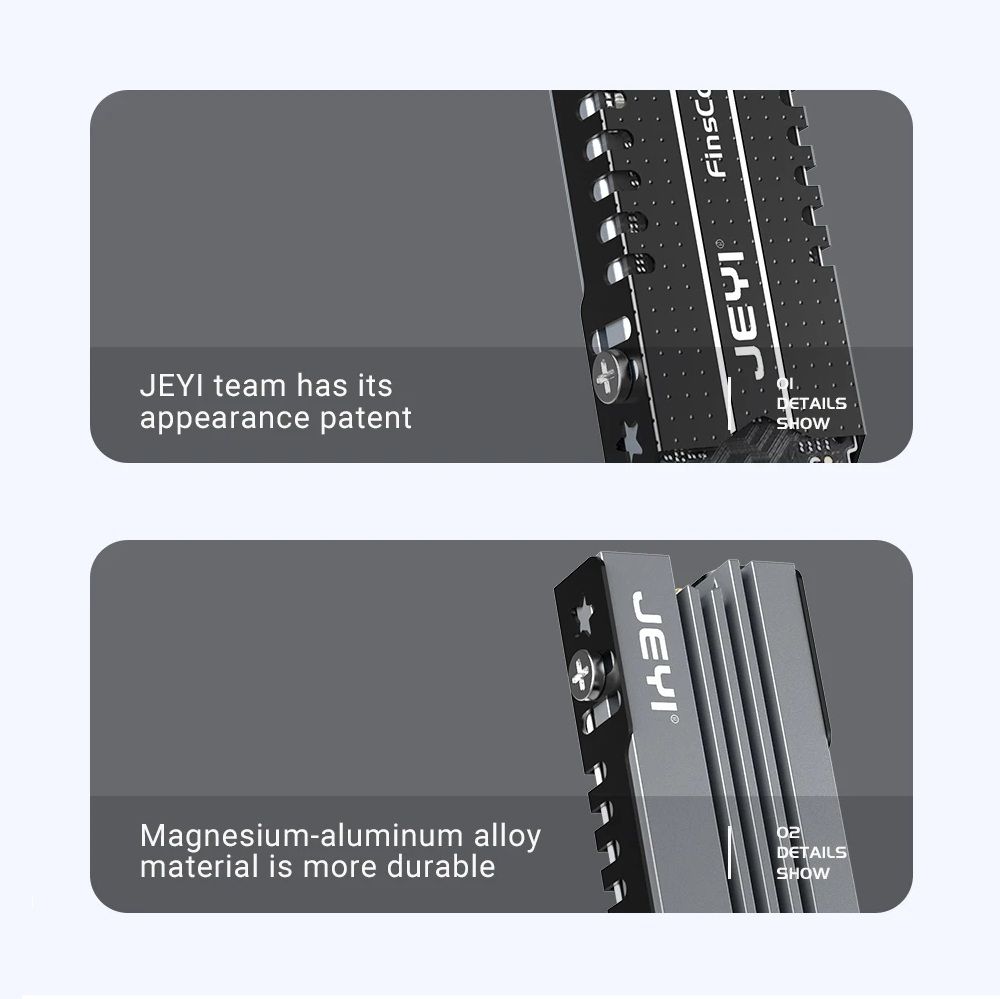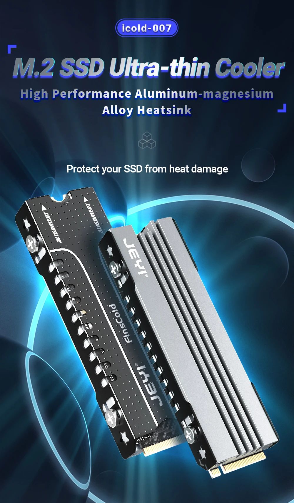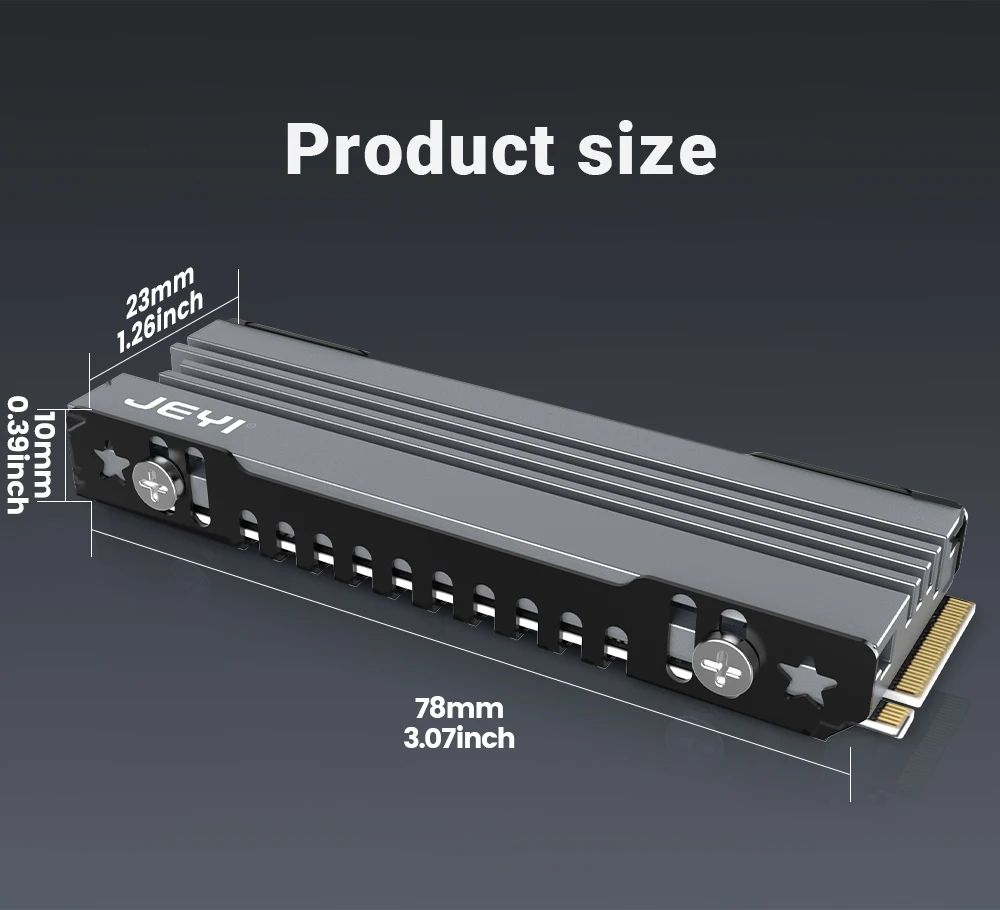 JEYI iCold-007 — этовысокоэффективныйалюминиевыйрадиатордля SSD формата M.2 2280 (NVMe/NGFF), разработанныйдлястабильнойработынакопителей в ПК, ноутбуках и игровыхприставках PS5. Онотличаетсякомпактнымиразмерами, прочнойцельнойконструкцией и улучшеннойсистемойтеплоотвода, чтопозволяетснизитьрабочуютемпературу SSD на 10–30°C и продлитьсрокегослужбы.