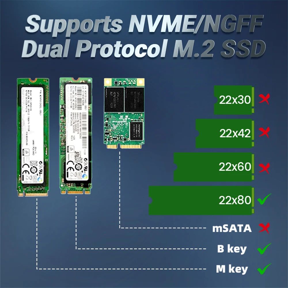 - Поддерживает M.2 NVMe и NGFF SSD стандартного формата 2280 для ПК, ноутбуков и PS5.