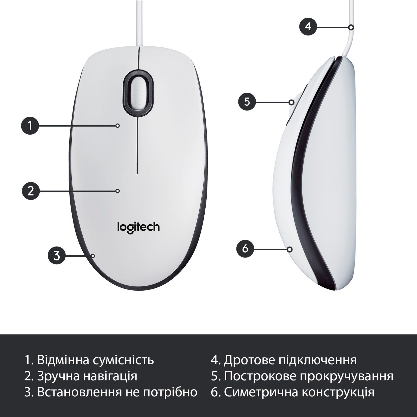 Мышь Logitech M100 в белом цвете (910-005004, 910-001605, 910-006764)