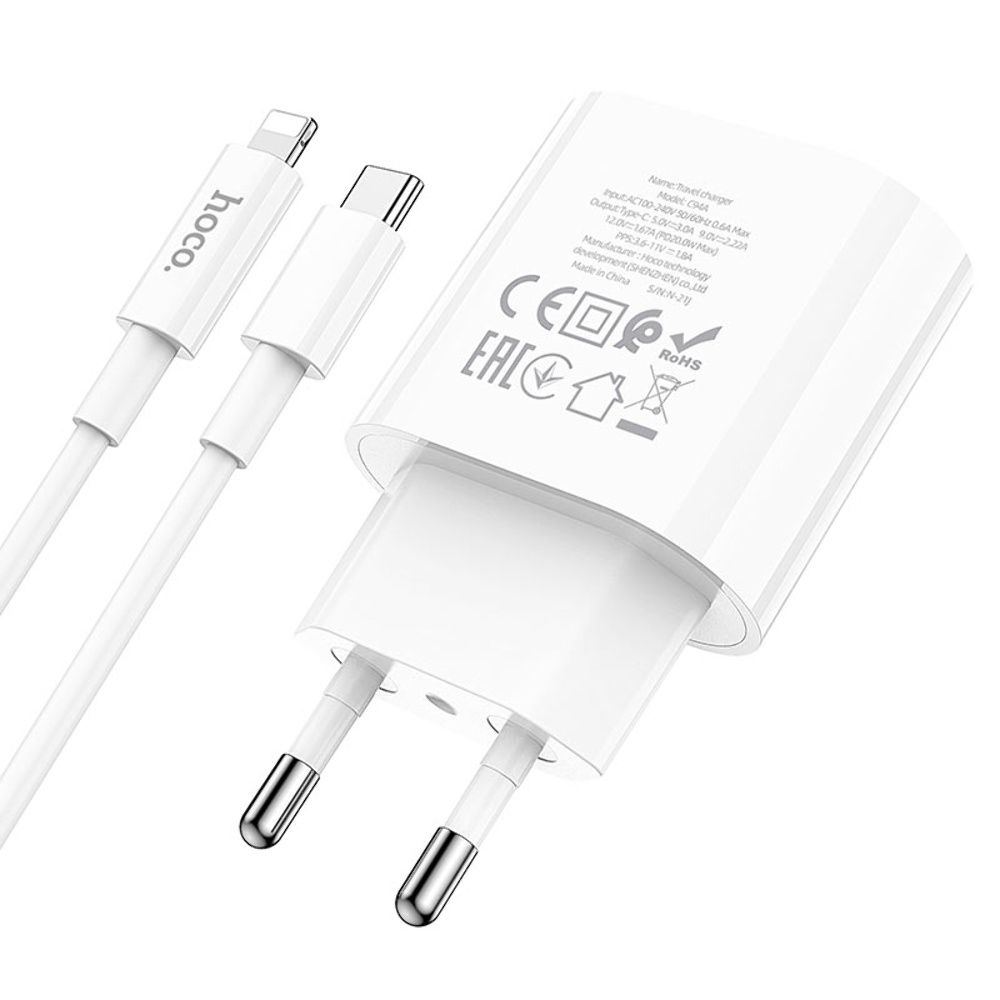 Сетевое зарядное устройство Hoco C94A Type-C PD белое + кабель Type-C to Lightning