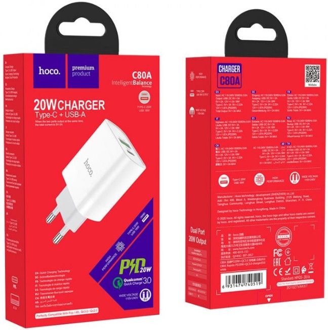 СетевоезарядноеустройствоHoco C80A – этосовременныйадаптер, которыйобеспечиваетбыструю, безопасную и эффективнуюзарядкумобильныхустройств. Благодаряподдержкедвухпередовыхтехнологийбыстройзарядки Quick Charge 3.0 и USB Power Delivery 3.0, устройствоидеальноподходитдлявладельцевкак Android, так и iOS-гаджетов.