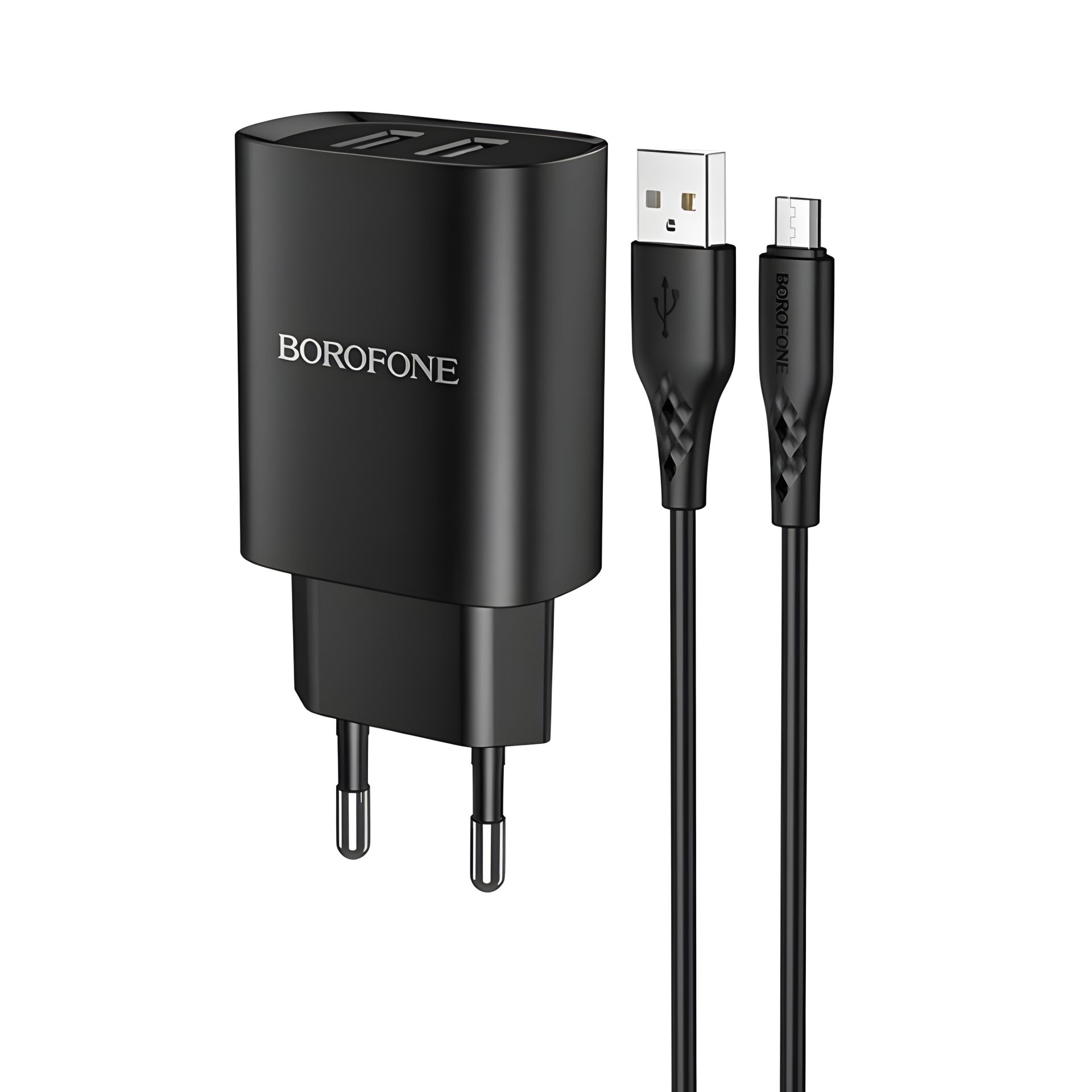 Зарядное устройство Borofone BN2 с 2 USB портами, черное, + кабель USB to MicroUSB