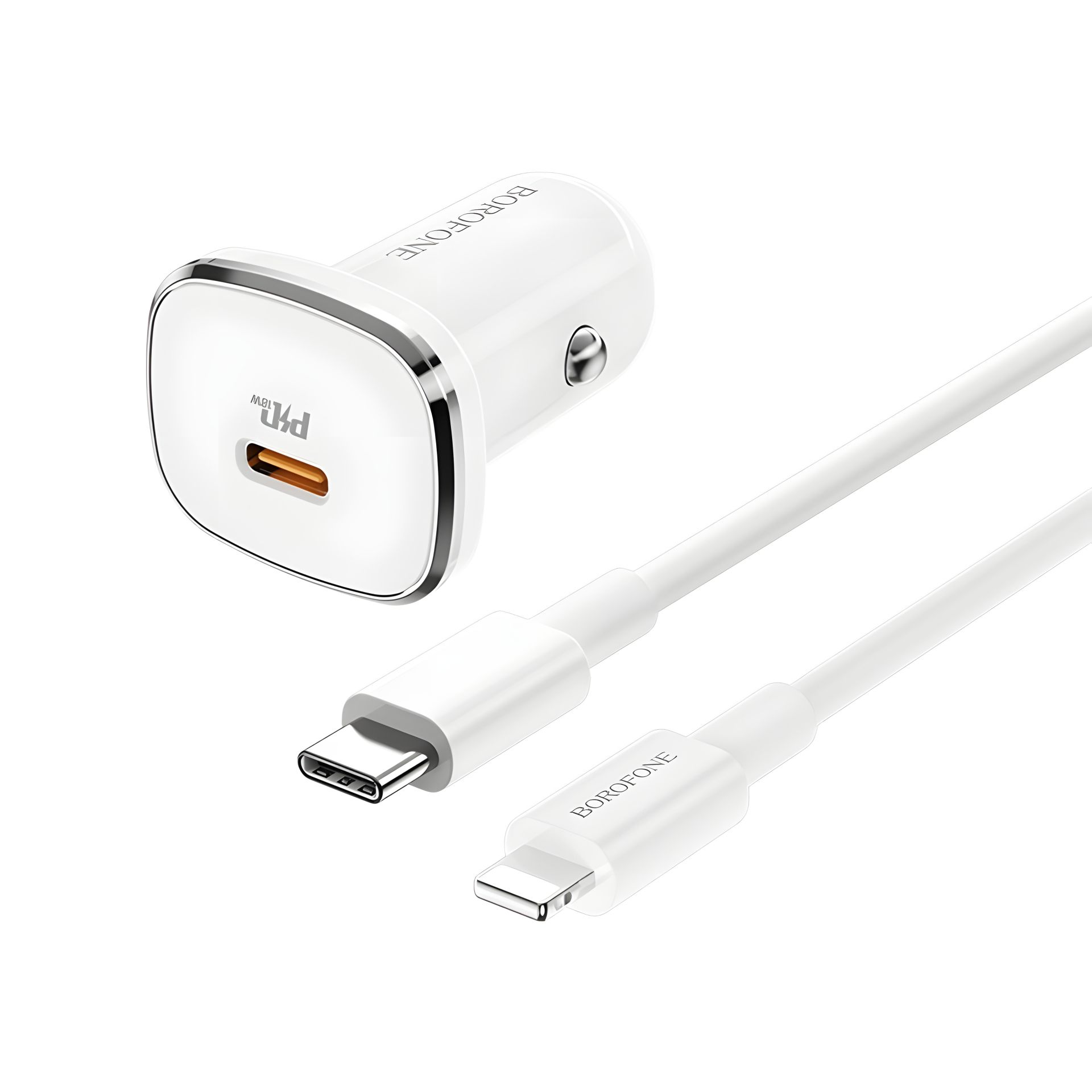 Зарядное устройство для автомобиля Borofone BZ12B Type-C PD белое с кабелем Type-C to Lightning