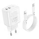 Сетевой адаптер Borofone BN9 Reacher PD/QC (2 USB-C) 35W Type-C to Lightning в белом цвете