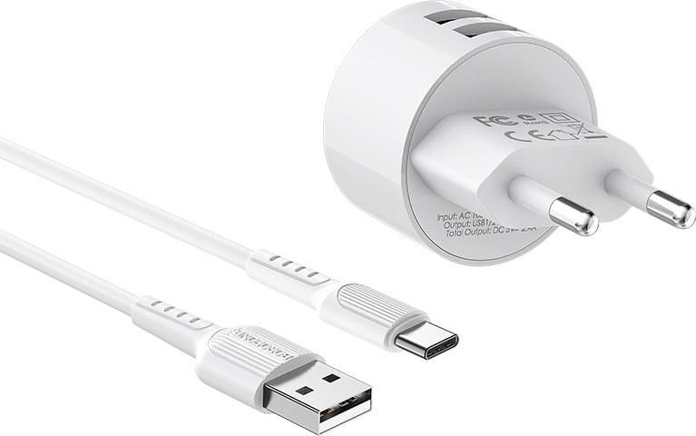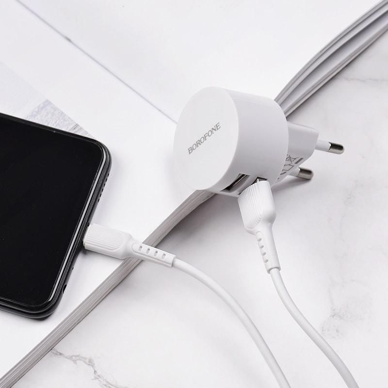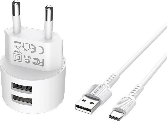 Borofone BA23A 2 USB 2.4A белое + кабель USB to Type-C зарядное устройство