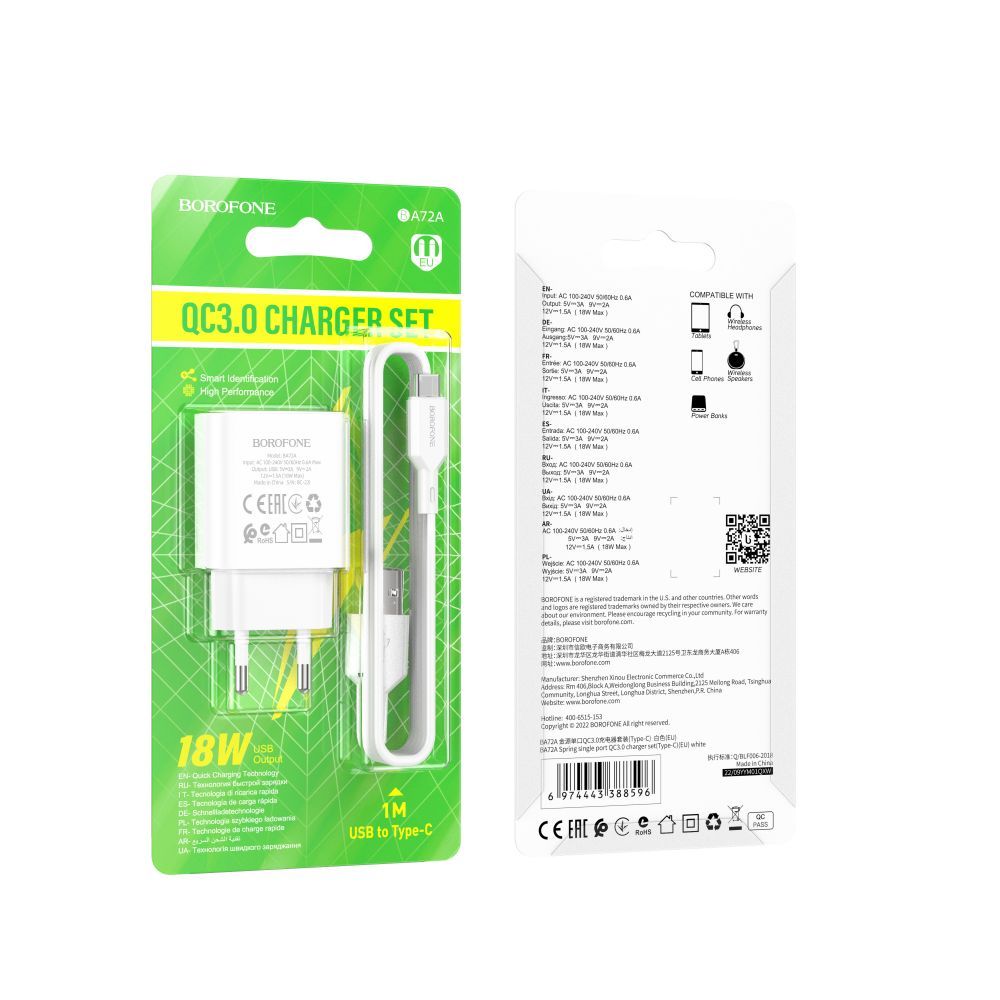 Зарядное устройство Borofone BA72A Spring QC3.0 Type-C Белое сетевое