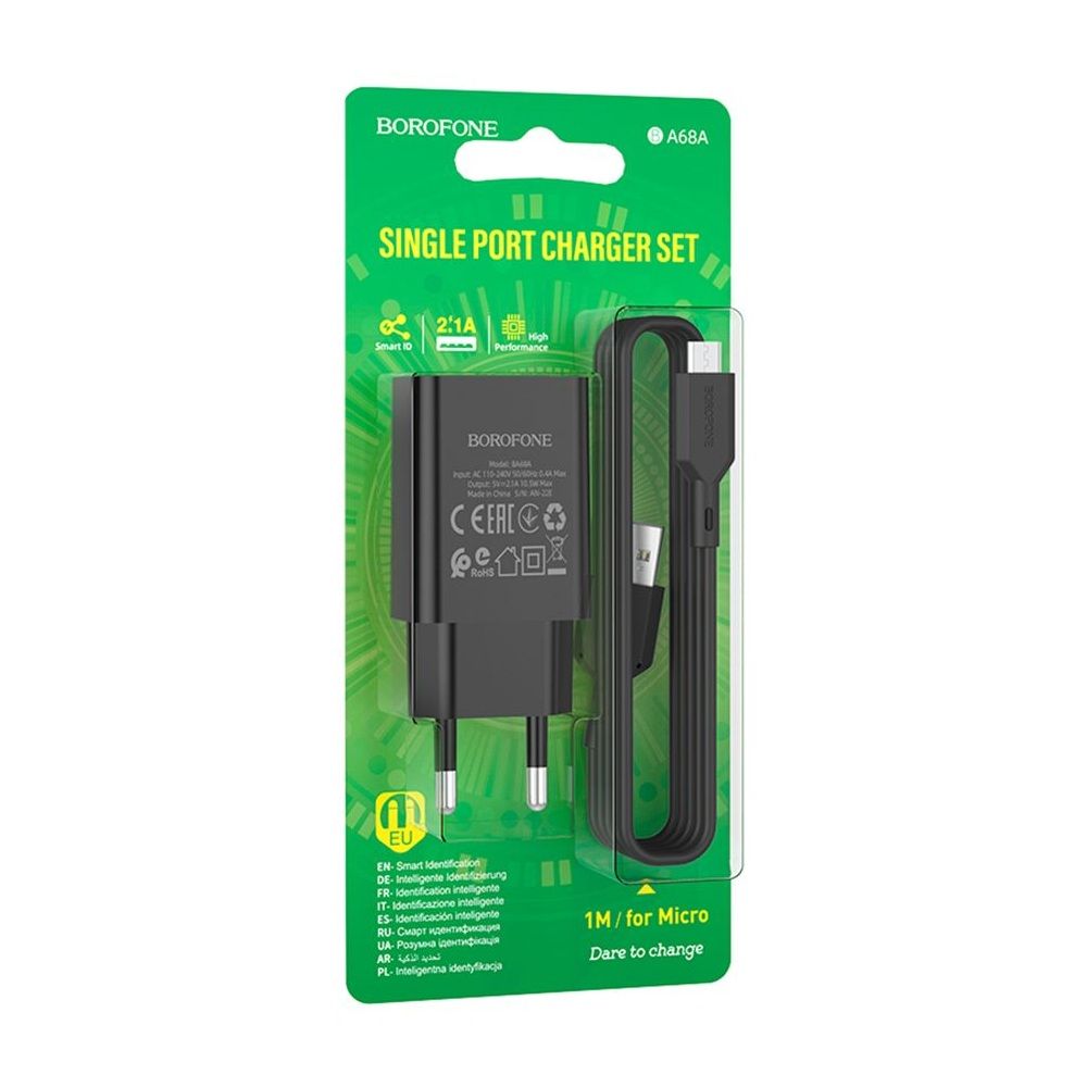 Сетевое Зарядное Устройство Borofone BA68A Micro 1USB 2.1A Чёрный