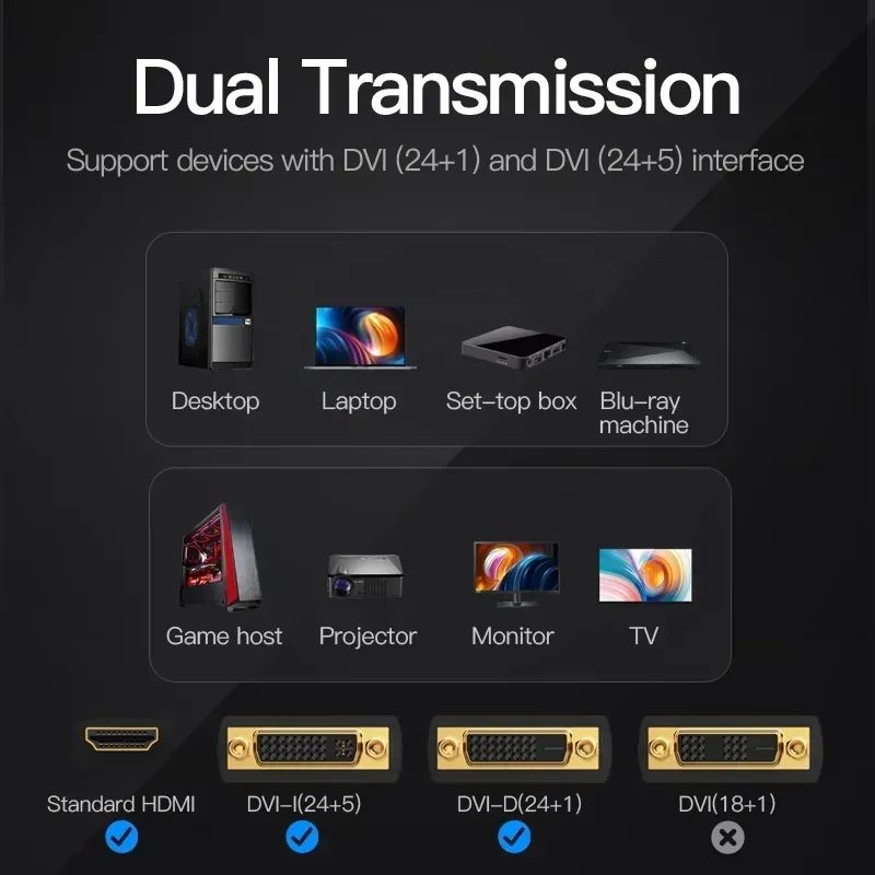 Это компактное и практичное решение для подключения устройств с разными видеостандартами. Этот адаптер позволяет передавать видеосигнал высокого качества между устройствами с интерфейсами DVI и HDMI, обеспечивая стабильное изображение в формате Full HD 1080p (1920×1080). Он поддерживает двустороннее преобразование — DVI → HDMI и HDMI → DVI, что делает его универсальным выбором для дома, офиса, игровых консолей и мультимедийных систем.