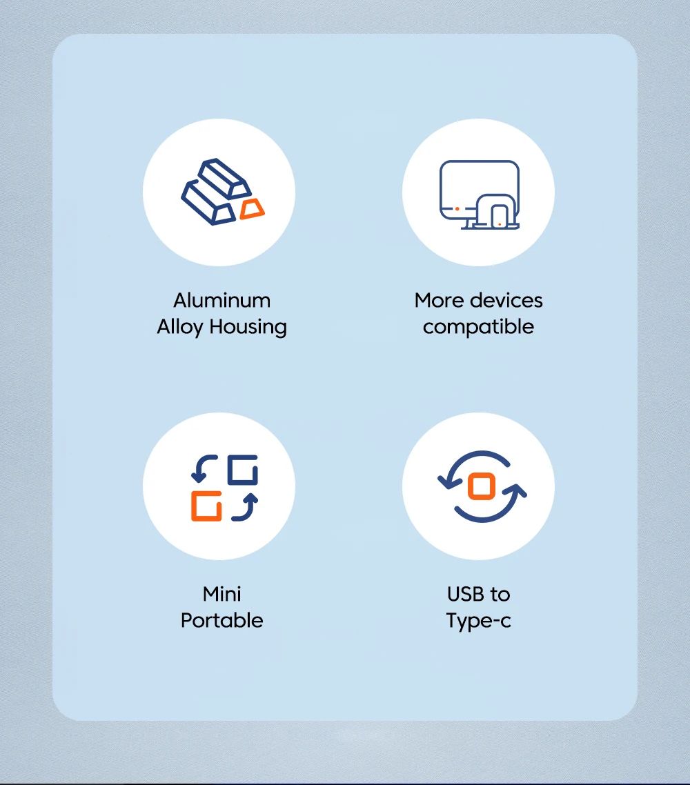 Это компактное и функциональное устройство, предназначенное для быстрой зарядки, передачи данных и подключения цифровых аксессуаров с разъемом Type-C к стандартному USB-порту. Изготовленный из прочного алюминиевого сплава, адаптер отличается долговечностью, устойчивостью к износу и стабильной работой.