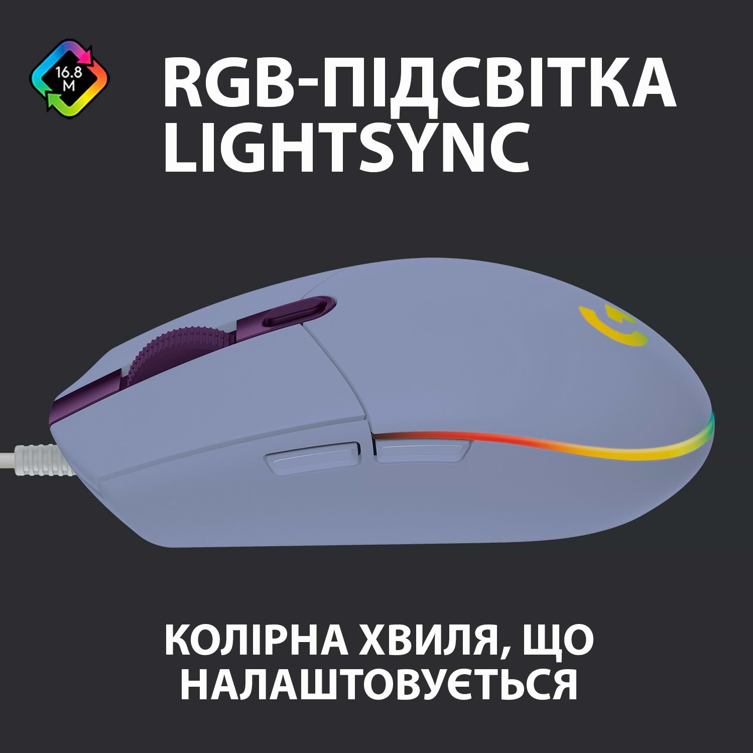 Подсветка: RGB LIGHTSYNC, до 16,8 млнцветов, синхронизация с играми, мультимедиа и музыкой