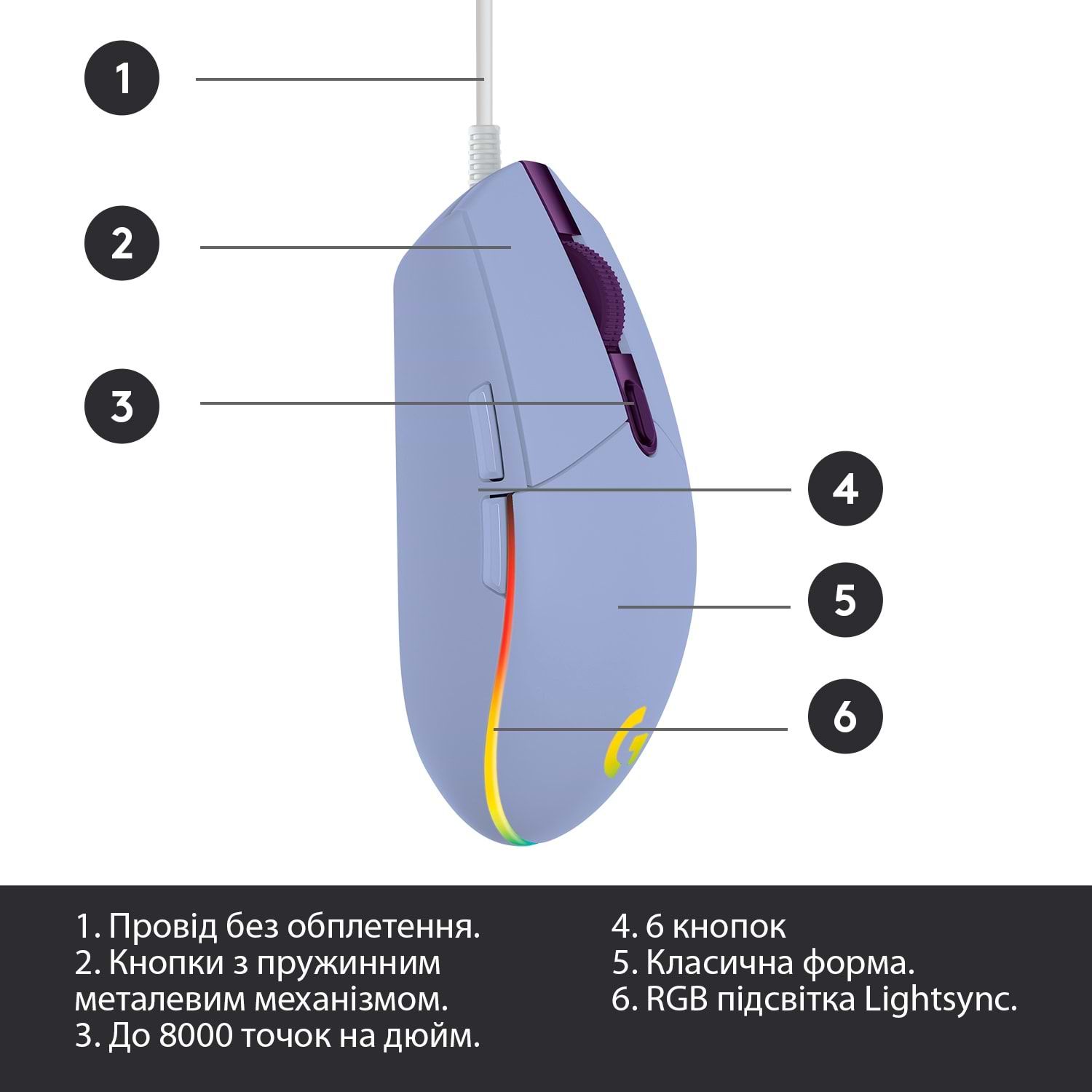 Игровая мышь Logitech G102 Lightsync USB Lilac (910-005854, 910-005857)