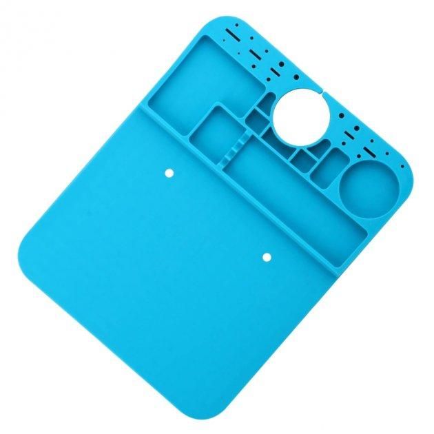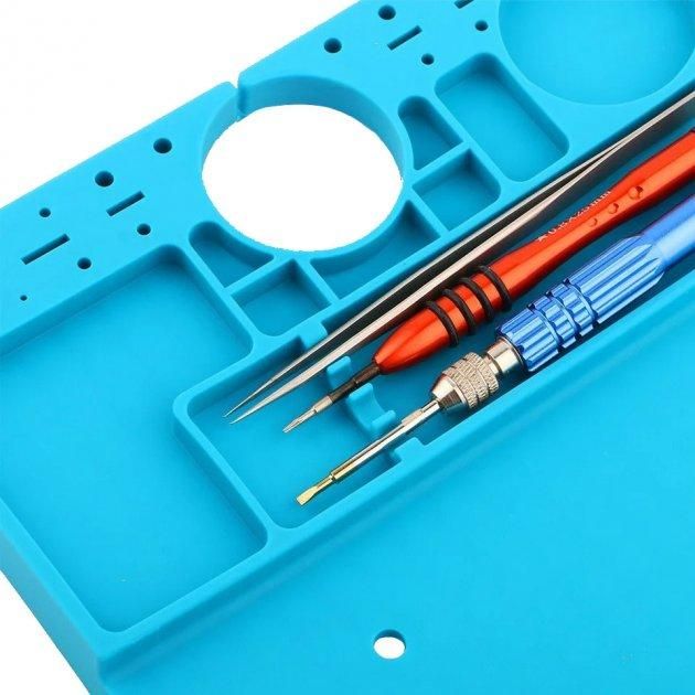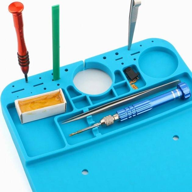 - Встроенные отсеки, выемки и бортики позволяют аккуратно размещать инструменты, винты, микросхемы и другие мелкие детали.