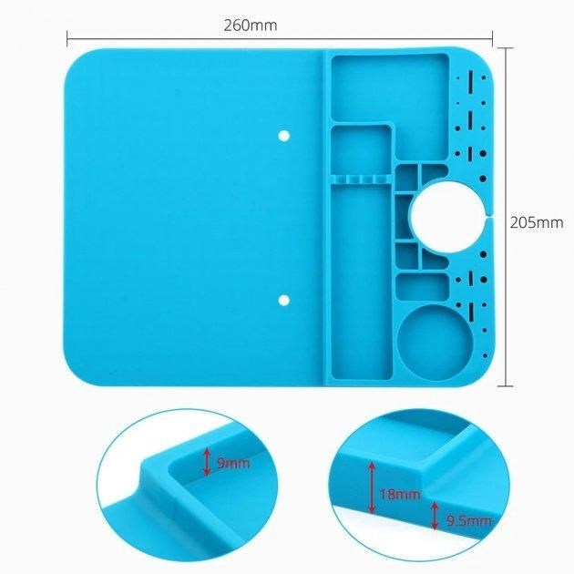 - Этот коврик эффективно предотвращает появление царапин, ожогов и других повреждений от горячих инструментов и паяльников.