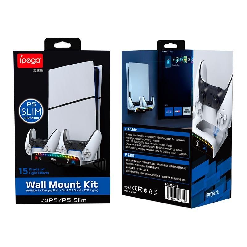 Док-станция Ipega PG-P5S011 — это продуманное настенное решение, которое объединяет в себе зарядку, хранение и организацию игровой зоны для консоли PlayStation 5 Slim. Устройство позволяет не только сэкономить место, но и придать интерьеру современный и технологичный вид благодаря яркой RGB-подсветке и аккуратной компоновке всех аксессуаров в одном месте.