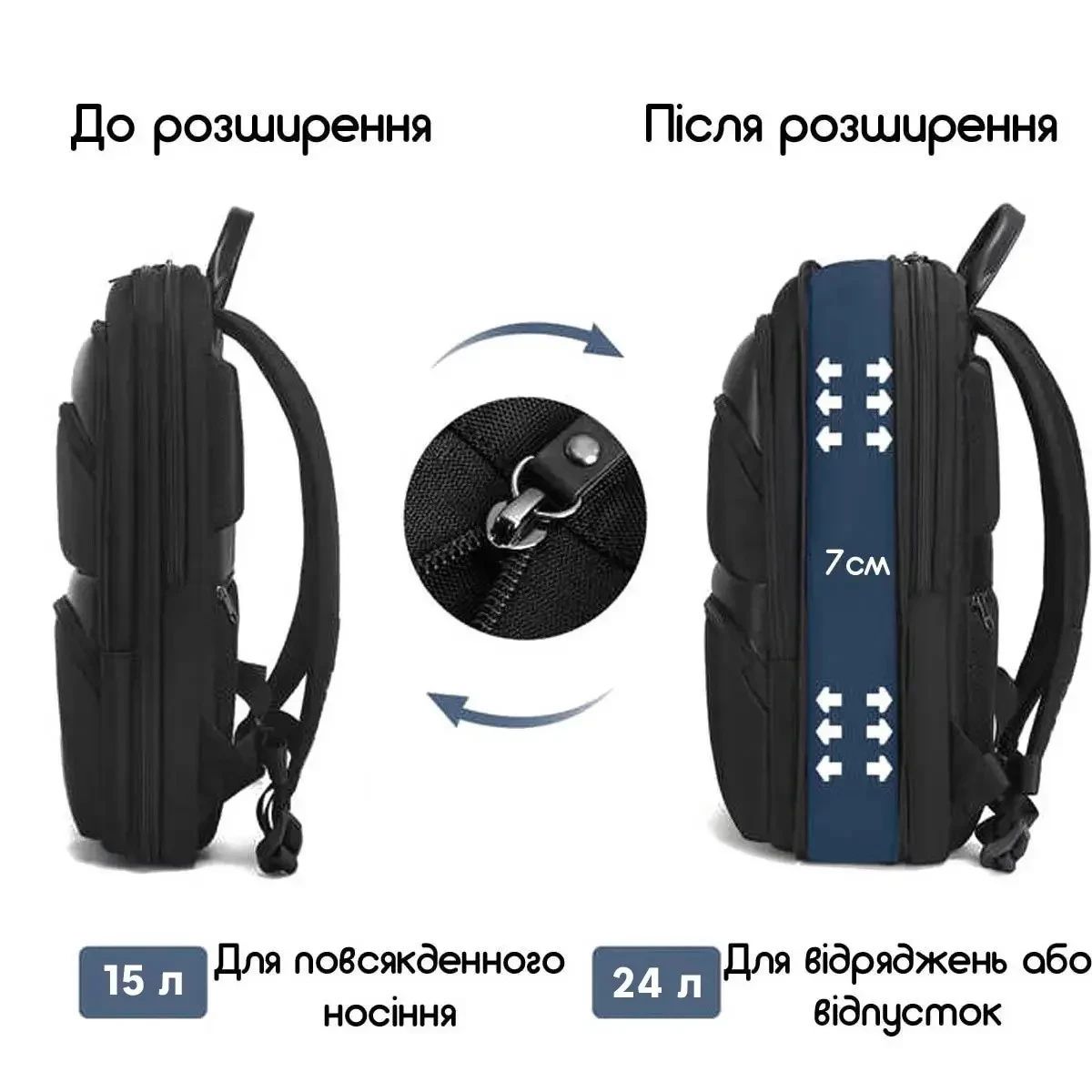 - Дополнительно предусмотрена возможность увеличить внутренний объём: при расстёгивании боковой молнии рюкзак становится шире — до 16 см, что особенно удобно при путешествиях.